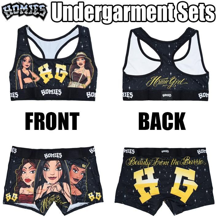チカーノ・カルチャーに多大な影響を与え続ける老舗ブランド【HOMIES】のスポーツブラとショーツの女性用下着セット☆