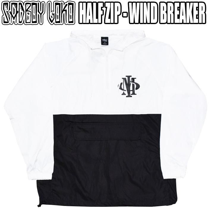 SADBOY LOKO【HALF ZIP - WIND BREAKER】WHITExBLACK