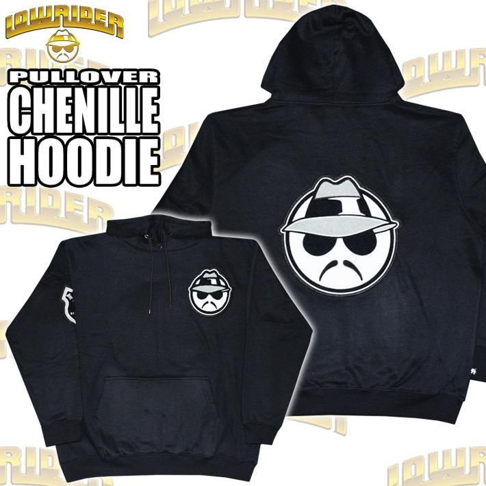 LOWRIDERのシンボルとも言える【GOLOMAN】の高級感のあるシェニールパッチをフロントとバックそれぞれに施したクラシックな雰囲気も醸し出すワンランク上のローライダー・ファッション・アイテムとなるプルオーバー・パーカー☆