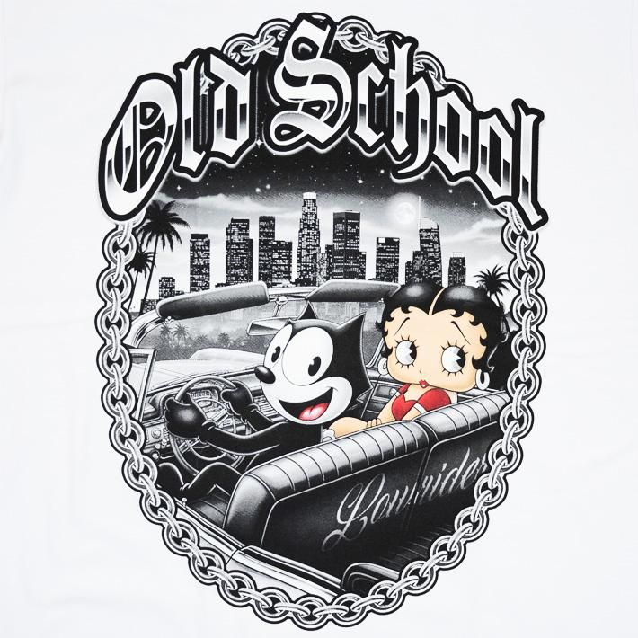 FELIX THE CAT(フィリックス)とBETTY BOOP(ベティ)のロサンゼルスを流すローライダー・クルージングを描いた【BILLIONARE BLVD】産HEAVYWEIGHT Tシャツ☆