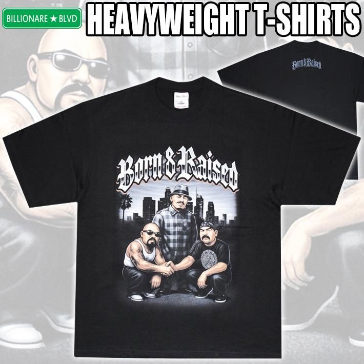 B.BLVD【T-SHIRTS】BORN&RAISED-TRES CHOLOS【BLACK】
