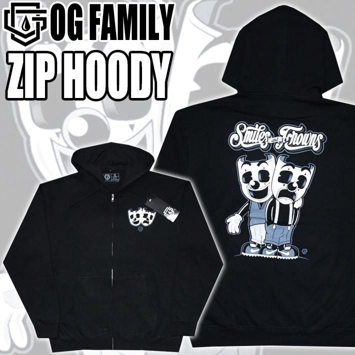 OG FAMILY【ZIP HOODY】SMILE AND FROWNS【BLACK】