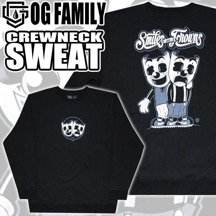 OG FAMILY【CREW NECK SWEAT】SMILE AND FROWNS【BLACK】