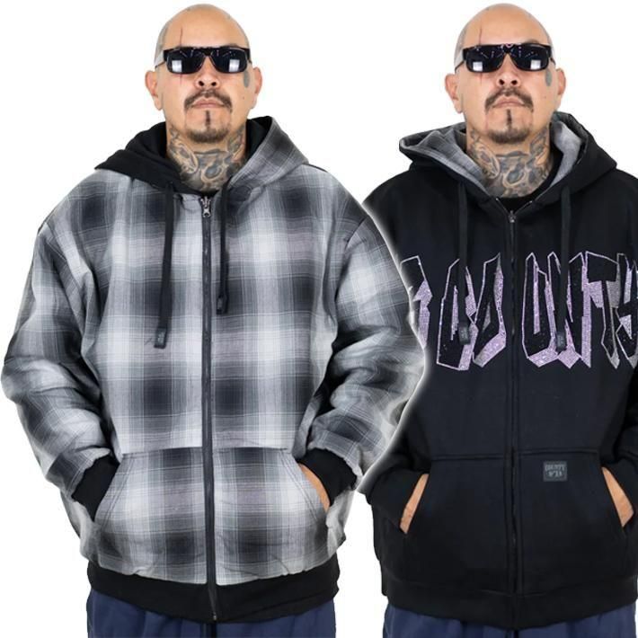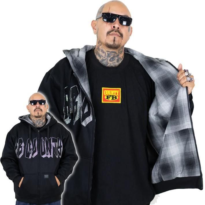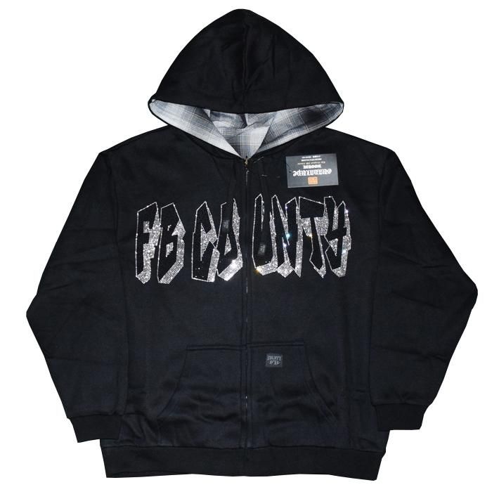チカーノファッションブランドの金字塔とも言えるFB COUNTYのラインストーン・デザインとフランネル・デザインのリバーシブルとなったZIP-UP HOODIE☆