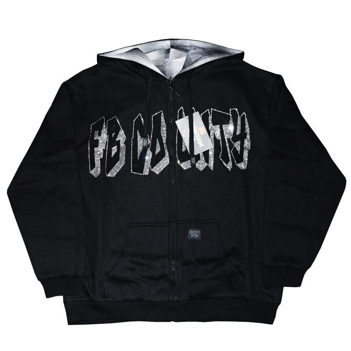 FB COUNTY【REVERSIBLE RHINESTONE FLANNEL HOODIE】BLACK
