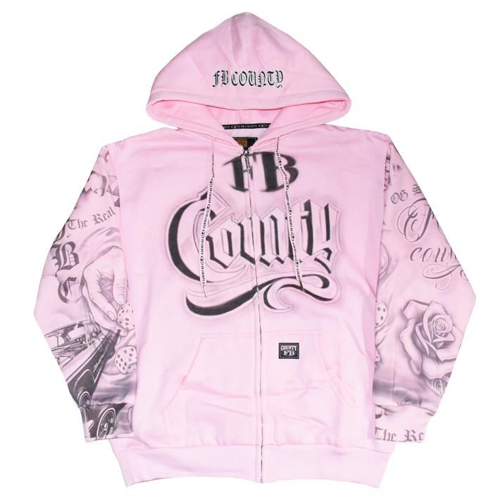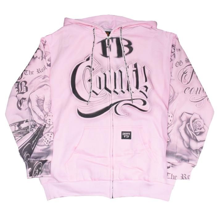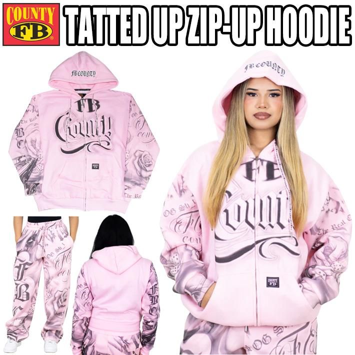 チカーノファッションブランドの金字塔とも言えるFB COUNTYのオールオーバープリントされたタトゥーデザインが超クールなZIP UP HOODIE☆